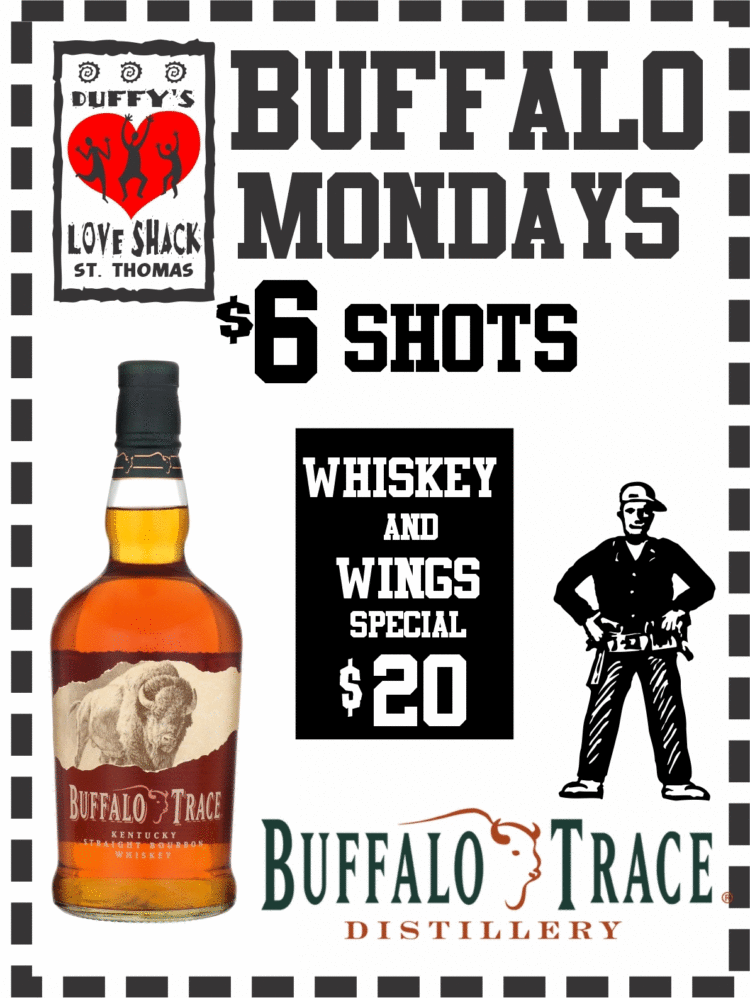Buffalo Trace shots $6 all day.