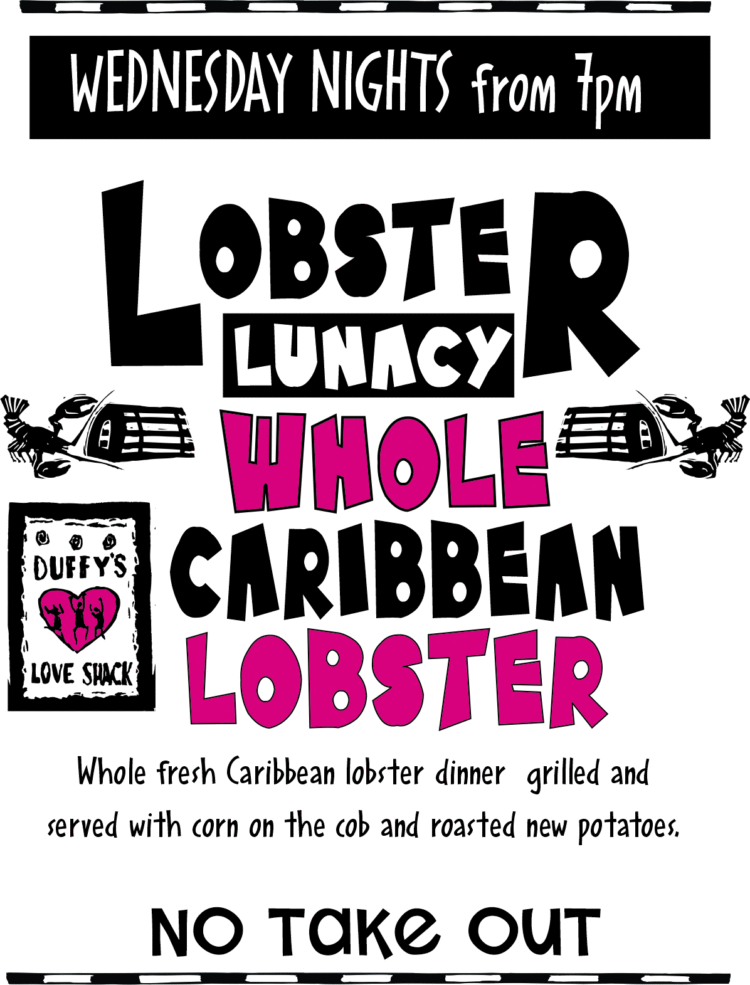 Featuring 1.5, 2lb, 3lb and Lobzilla size Lobsters with baked potato, coleslaw. $39 and up. First Come First Serve, NO RESERVATIONS. We sell what they catch. When they're gone, they're gone.
